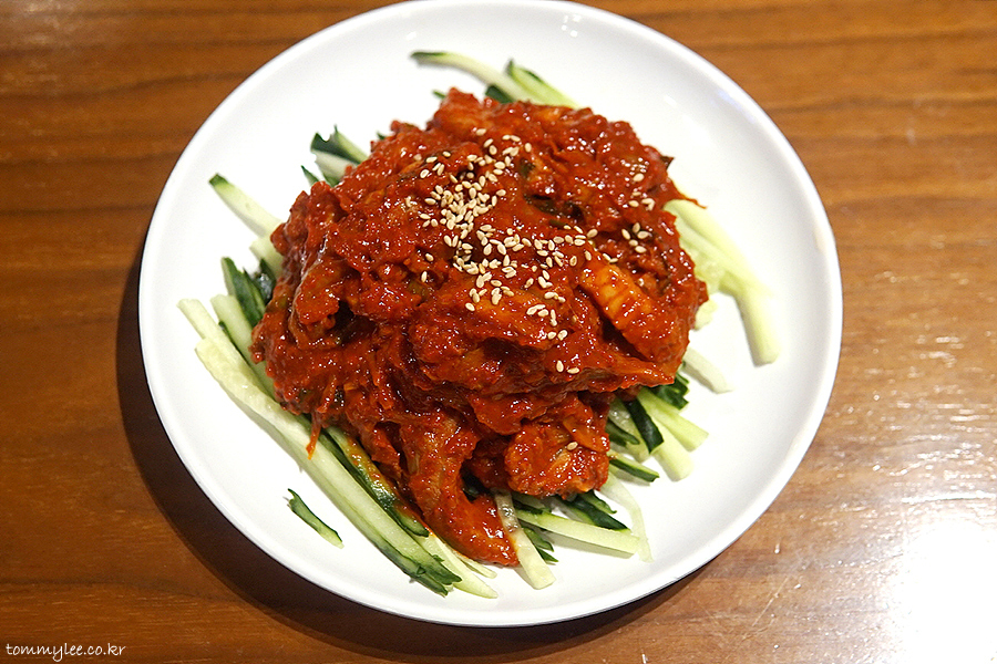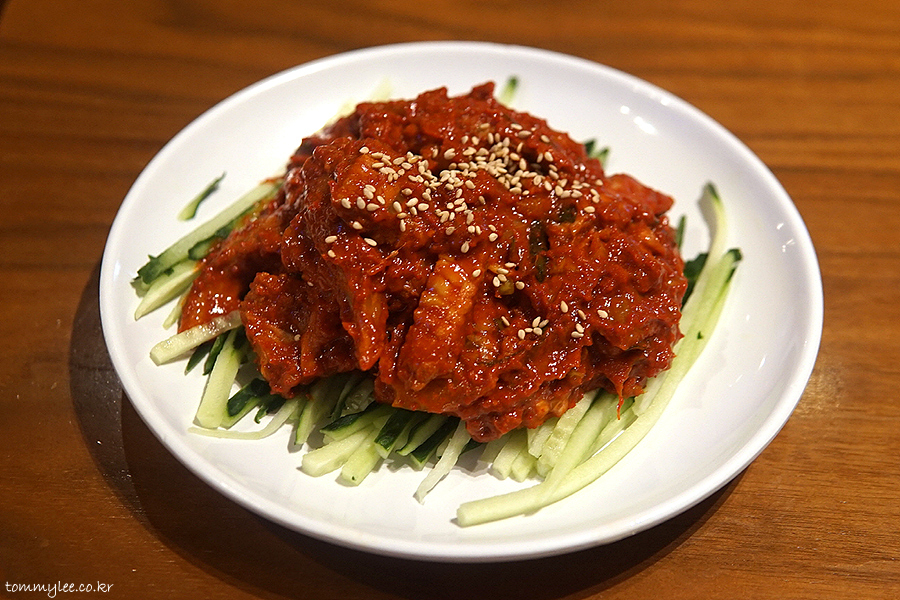 보통사람이 그냥 먹기엔 많이 맵고요.. 뭔가 같이 먹어야 하는 메뉴입니다.. 냉면 토핑이 늘 부족하셨다.. 여유롭게 먹고 싶다 하시는 분들은 곁들임 메뉴로 매우 적합해요..