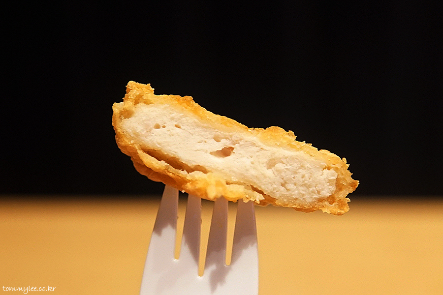 나이프로 커팅해보면 요런 느낌입니다.. 맛있진 않은데 뭔가 맥도날드스러워서 좋았던..