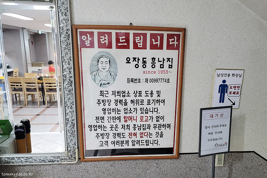 오장동 흥남집 상표 도용 및 주방장 경력을 허위로 표기하여 영업하는 업소가 있으니 주의하라는 안내문이 있네요.. 오장동 흥남집 간판을 달고 있지만 할머니로고가 없는 가짜 오장동흥남집 매장이 실제로 존재한답니다.. 저 설명 그대로인데 가짜인데 진짜 같아요.. 인테리어는 그쪽이 더 나은듯한 느낌마저 있었음.. ㅡㅡ;;.. 오장동흥남집은 본점, 신림점, AK분당점, 스타필드고양점, 롯데몰김포공항점, 롯데몰수지점, 청주점 외엔 모두 가짜라고 하니 주의하세요..
