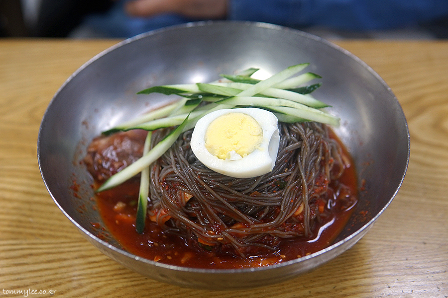 비벼보면 이런 느낌.. 끊어질 듯하다가도 안 끊기는 함흥냉면 특유의 탄력면발 좋습니다.. 함흥냉면은 평양냉면의 메밀면과는 전혀 다른 이빨로 끊어 먹는 맛이 있는지라 가위로 면을 자른 후 드시면 손해입니다.. 큰 재미를 포기하는 셈이니까요..