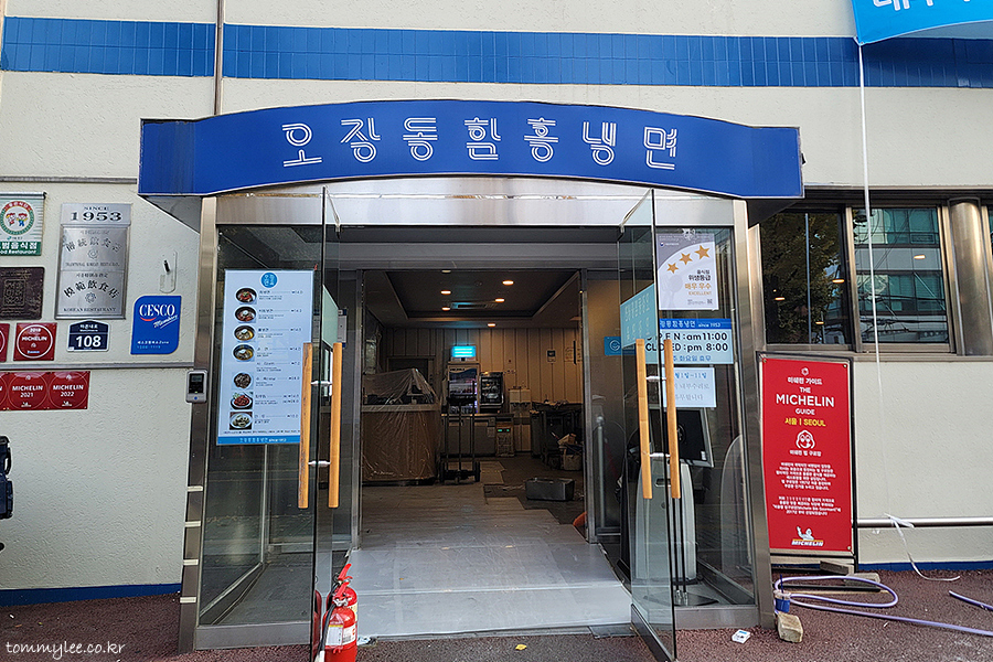 중구청 사거리에서 조금만 발길을 옮기면 닿을 수 있는 오장동 함흥냉면 거리.. 함흥냉면거리라고 하기도 뭐 한 게 함흥냉면집이 2곳뿐입니다.. 신창면옥이 평택으로 내려간 지가 오래전이라.. 현재 오장면옥과 흥남집만 있음.. 파란 간판의 오장동 함흥냉면은 내수부리 당첨.. 오늘도 여기서 함흥냉면을 못 먹네요.. 흥남집보단 여기가 더 맛있는데 아쉽..