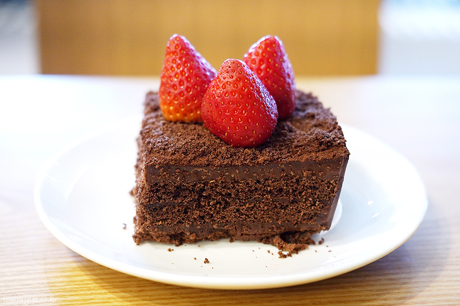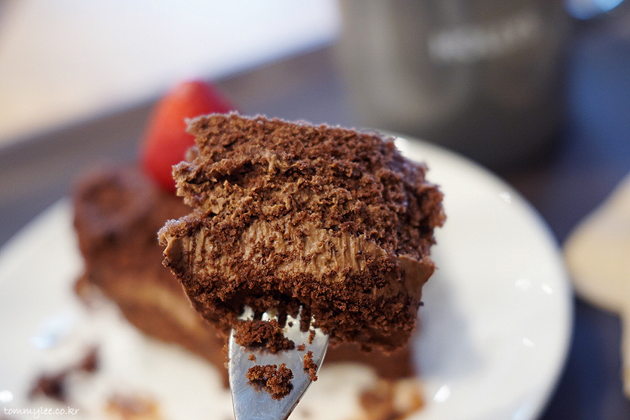이건 뭐 우린 부끄러움 따윈 없다는듯이 그냥 대놓고 따라한 메뉴입니다.. 딸기 장식 3개에, 초코크림-초코시트 3단, 중간에 크런치볼 들어간 것까지 투썸플레이스 떠먹는 스트로베리 초코 생크림 케이크와 정말 똑같음..