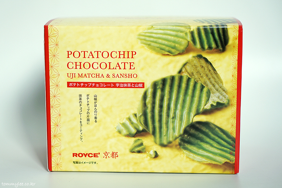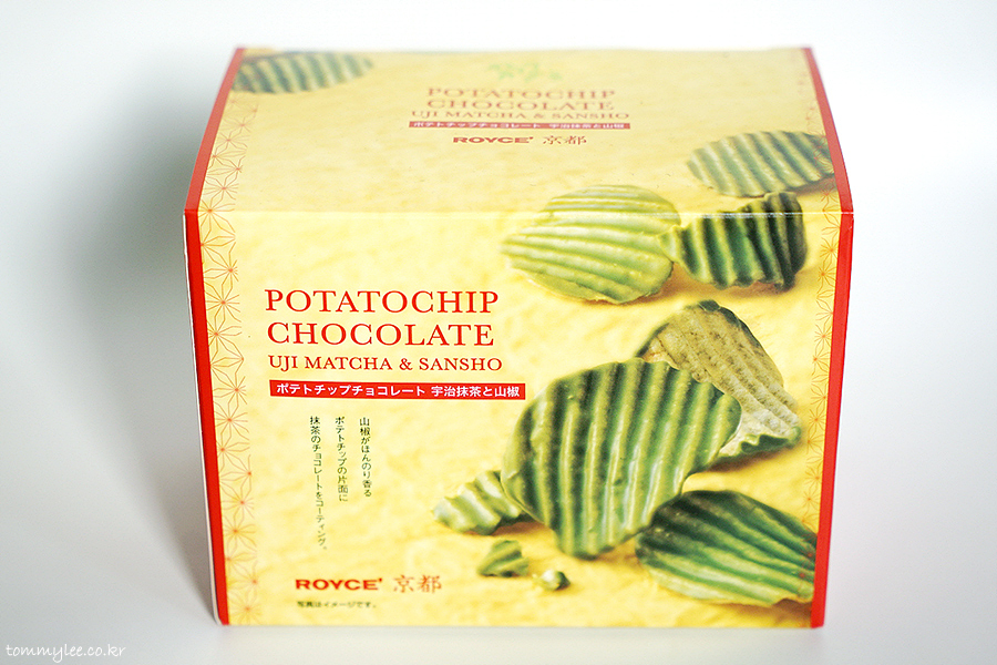 ポテトチップチョコレート宇治抹茶と山椒.. 포테토칩 초콜릿 우미맛차토산쇼.. 로이즈 교토한정 포테토칩 초콜릿 우지 말차와 산초.. 972엔..