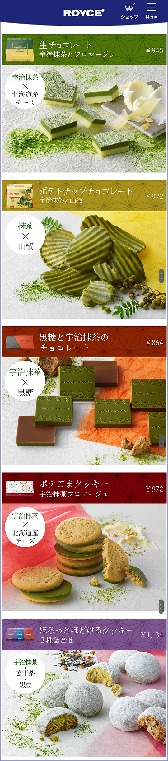 교토한정 로이즈라니.. 저는 처음 들어봐서 바로 로이즈 홈페이지 가서 로이즈 교토한정 스위츠 조사.. 한두 종류가 아니라 엄청 많네요??.. 생 초콜릿 우지 말차와 프로마주, 포테토칩 초콜릿 우지 말차와 산초, 흑당과 우지 말차의 초콜릿, 포테고마 쿠키 우지 말차 프로마주, 사르륵 부드러운 쿠키 3종 세트..