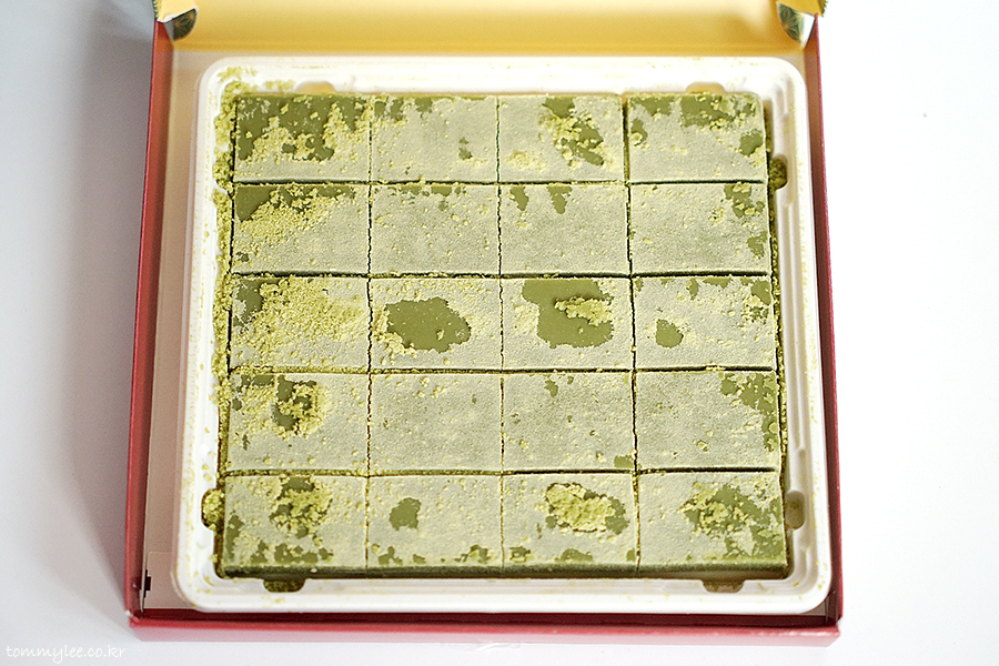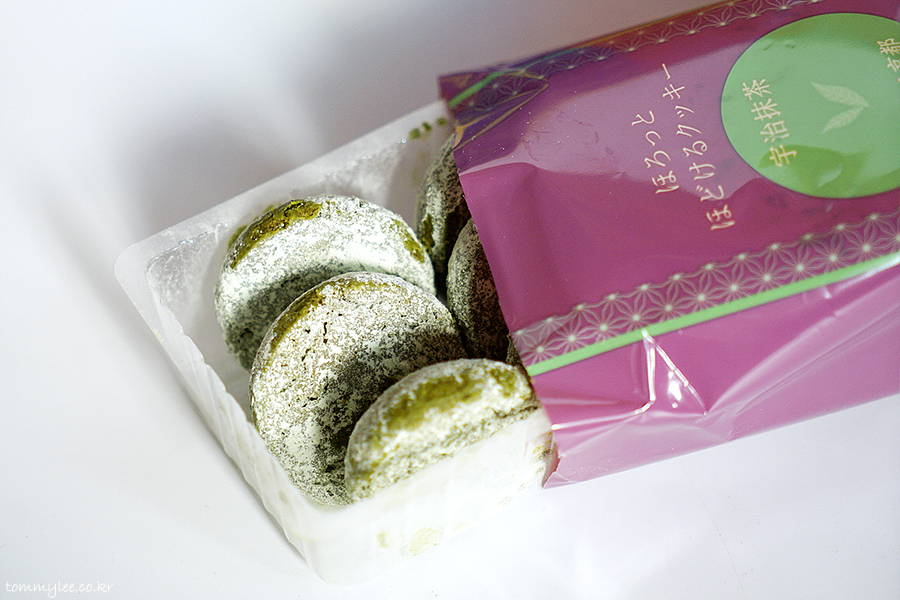 슈가파우더가 말차쿠키를 감싸고 있는 형태인데요.. 일본에서 건너오느라 힘들었나 봐요 파우더가 군데군데 벗겨져 있어서 살짝 아쉽..