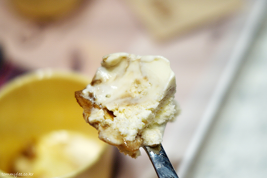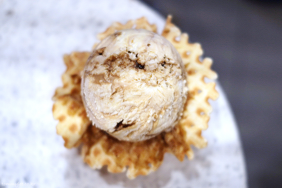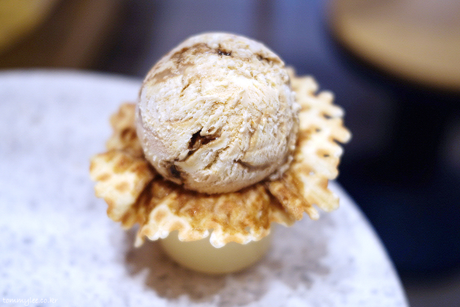 밀크티 아이스크림에 까망베르 치즈 아이스크림에 블랙슈가 리본을 둘러 호랑이 무늬를 연출했네요.. 과연 맛은 어떠할는지..