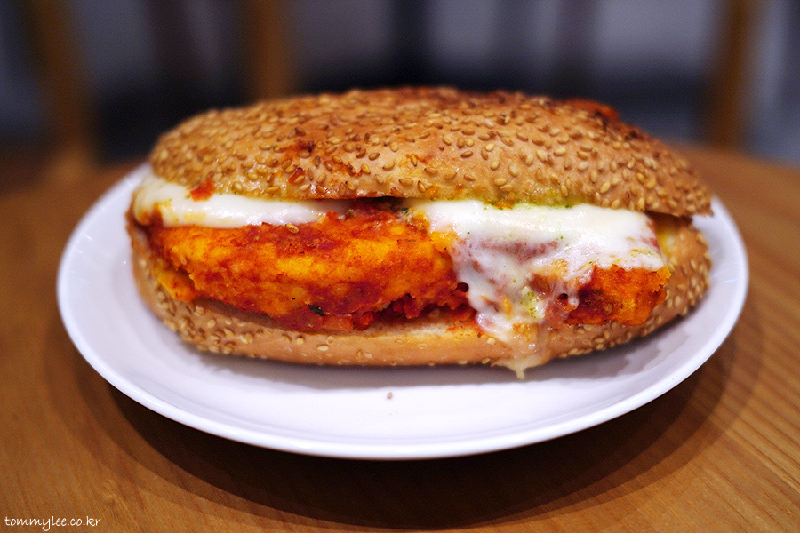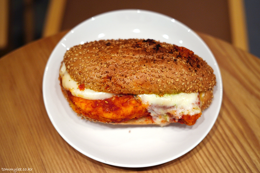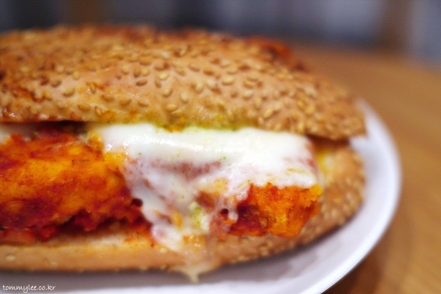 닭가슴살이 상당히 두툼해서 볼륨감이 있고.. 프레시 모짜렐라를 사용했기 때문에 치즈 텍스처가 부드럽습니다..