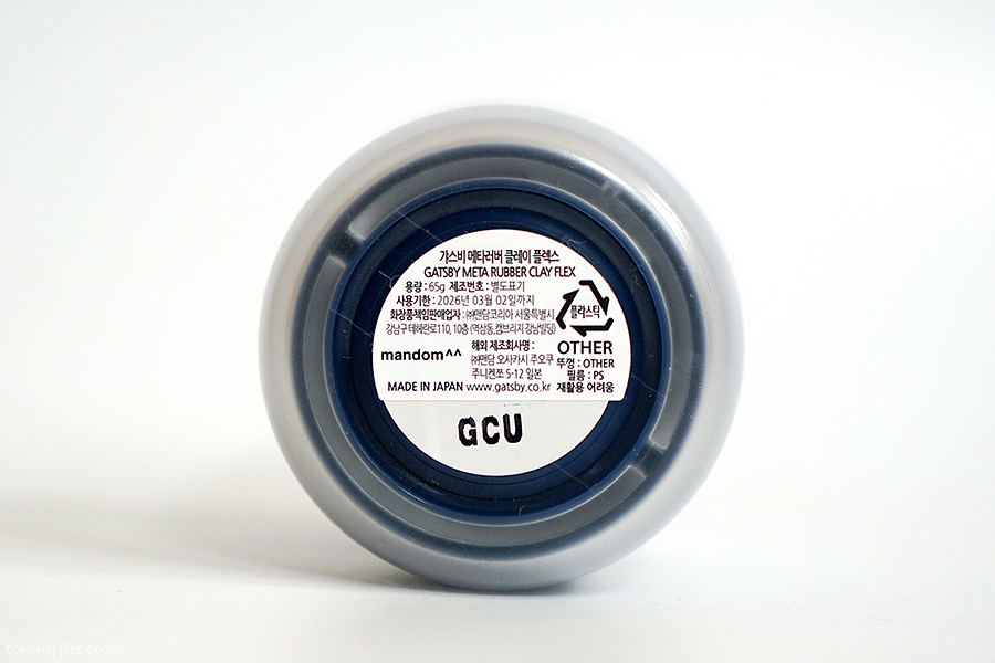 갸스비 메타러버 클레이 플렉스를 뒤집어 보면 요런 느낌.. 공간이 협소하다 보니 제품정보는 외부에 부착된 스티커 쪽에 전부 담겨 있네요.. 프리미엄 왁스답게 일본제 오오~..