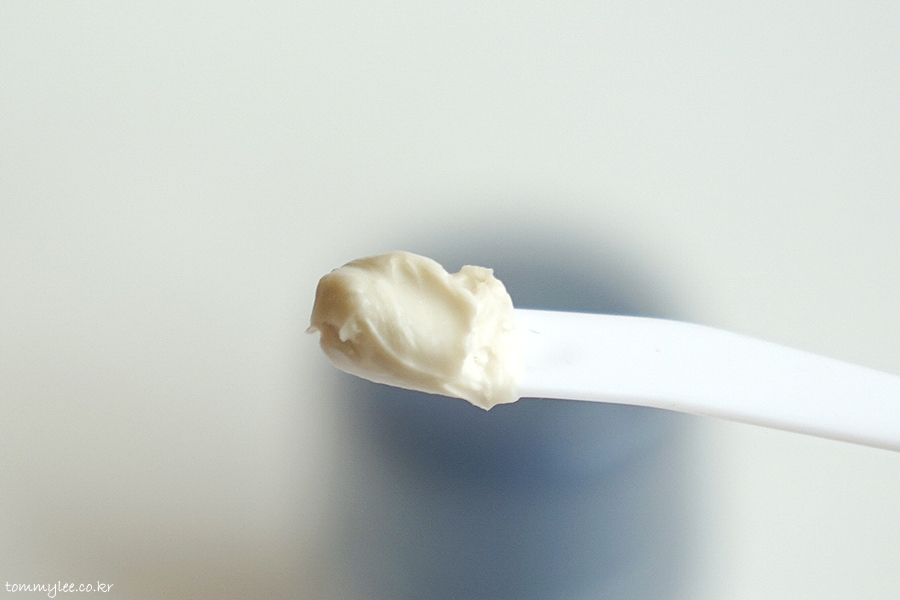 색은 크림색이고 기존 제품보다 조금 더 꾸덕한 기분입니다.. 상당히 잘 펴 발려서 깜짝 놀랐어요.. 기존 왁스 사용량의 절반 양으로도 충분한 연출이 가능하지 않을까 하는 생각도 들고..