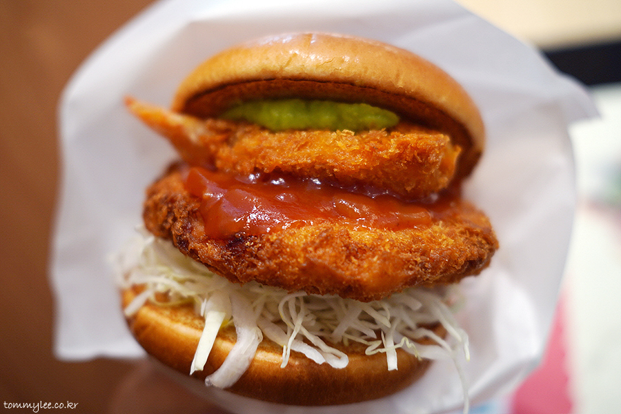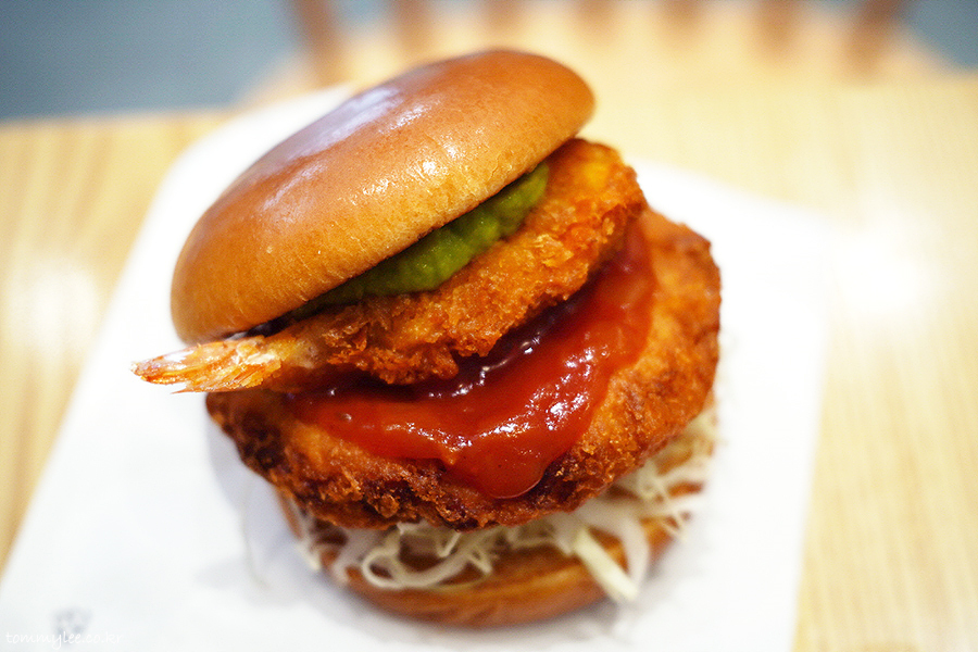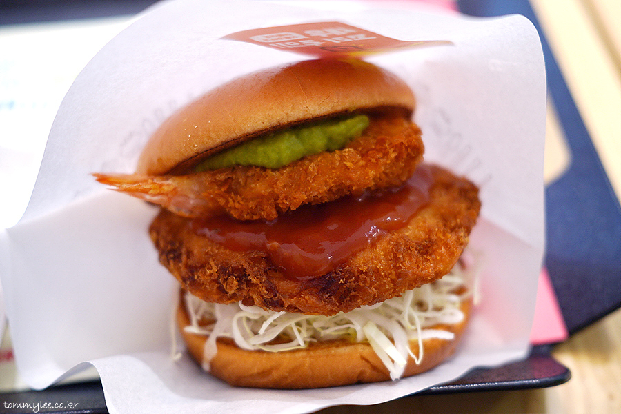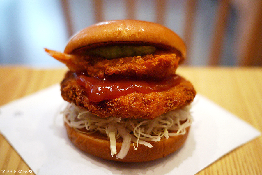 새우 한 마리를 그대로 튀겨낸 버터플라이 새우가 포인트인데.. 통새우살패티 볼륨에 맞춰 한마리를 더 넣었더라면 더 좋았을 뻔했는데 그러면 가격이 9천원 정도로 올라가는지라 여의치는 않았던 듯하네요..