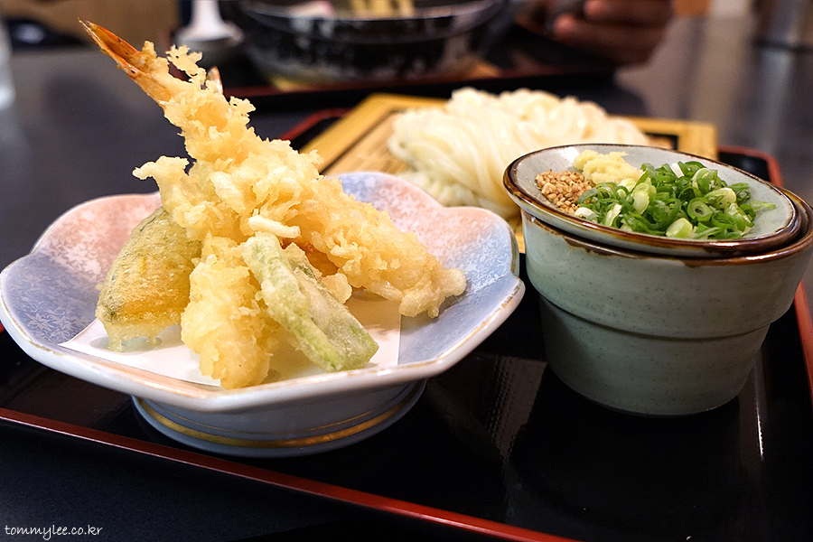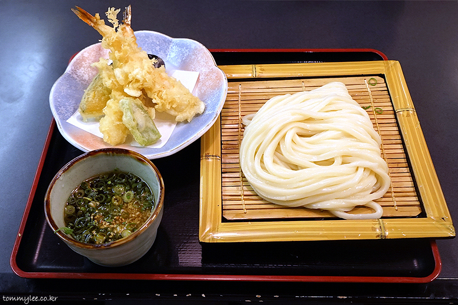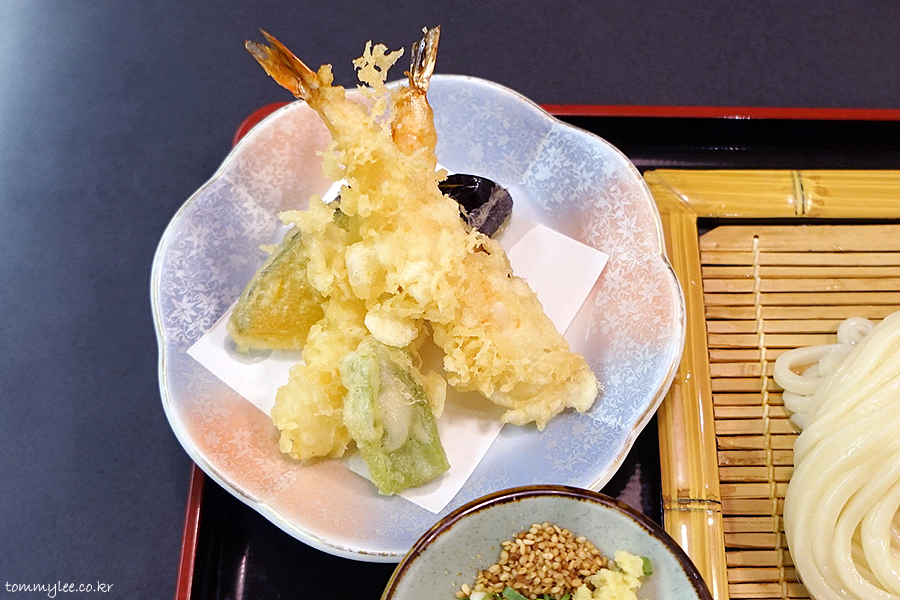 텐자루우동입니다.. 자루우동에 텐푸라가 나오는 우동이 되겠고요.. 텐쯔유가 따로 나오진 않았네요..