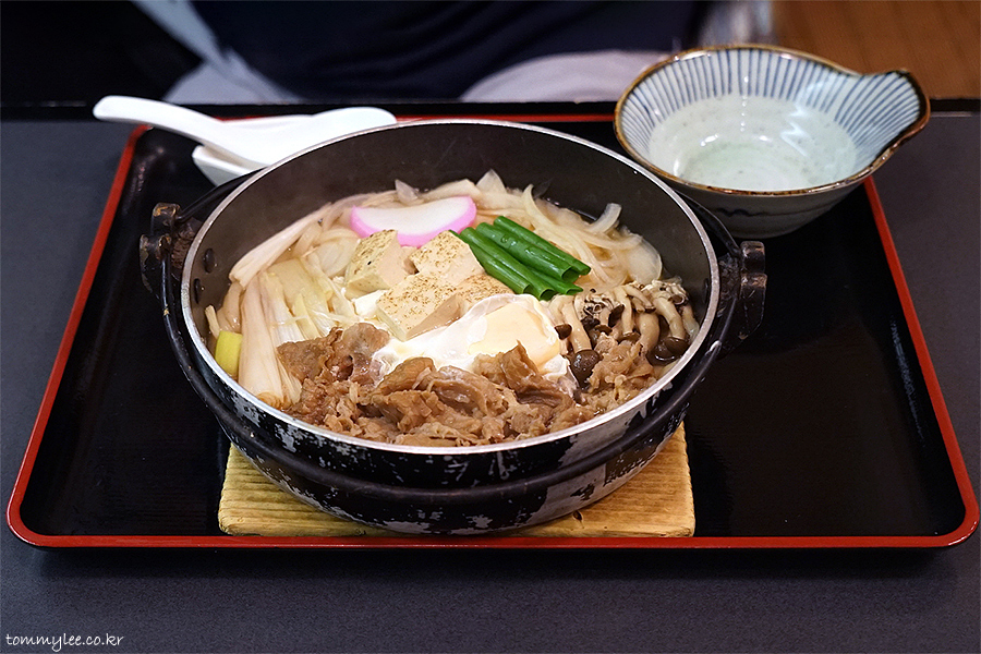 지인분께서는 나베우동이 드시고 싶으시다고.. 가장 비싼 스키야키나베우동으로 호화스럽게 가고 싶으시다고.. 스키야키가 제일 비쌌지만 그래도 천엔 언더니까 비싼 거 먹어도 부담이 전혀 없었어요.. ㅋㅋㅋ..
