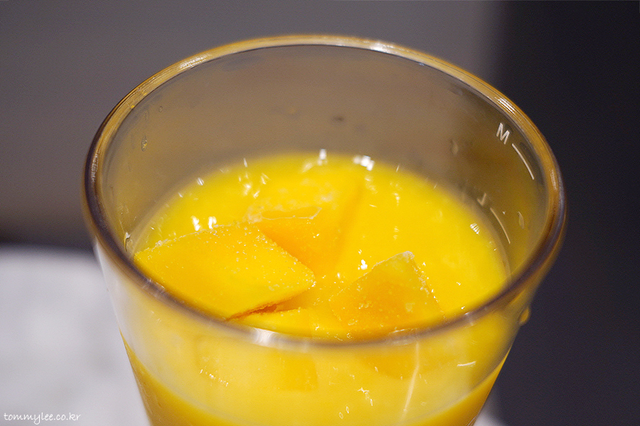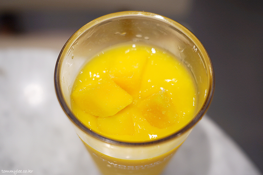 망고만 들어간 건 아니네요.. 애플망고에 패션후르츠 주스가 블렌드된 느낌.. 냉동망고 갈아서 주스라기보다는 스무디에 더 가까운 기분이라고 보시면 될 듯싶어요..
