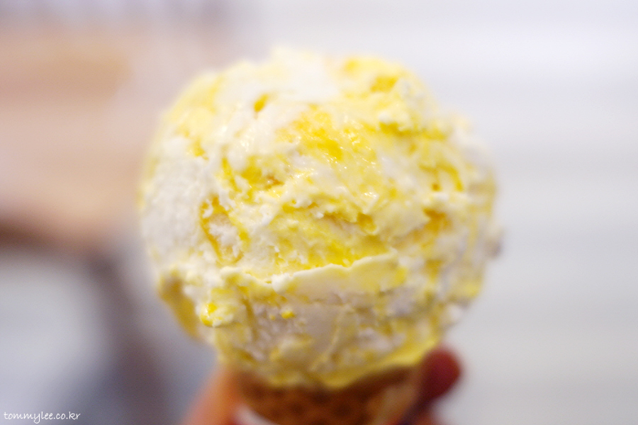 알폰소망고 아이스크림에 유기농 우유 아이스크림, 망고 리본, 망고 과육이 들어간 본격 망고 아이스크림이 되겠어요.. 최근 나온 라이언 망고 마카롱과는 전혀 다른 맛의 망고 아이스크림..