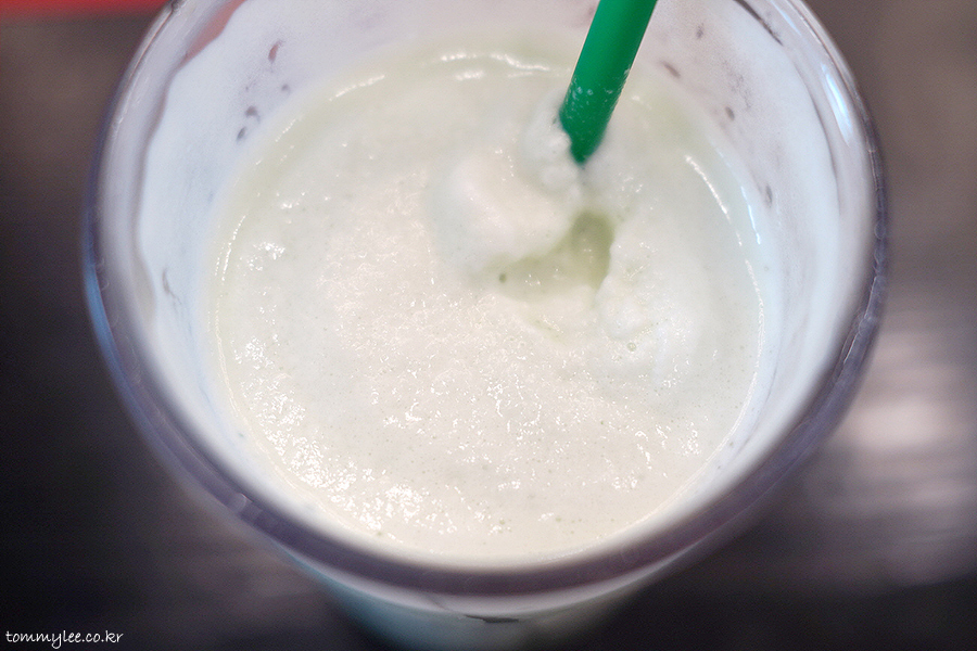 한 모금인데 스무디가 20%는 사라진듯.. ㅡㅡㅋ.. 크리스피크림 스무디가 전체적으로 맛이 좋은데 메론 스무디는 특히나 더 맛있는 듯.. 부드러워서 쉐이크 느낌 나고 좋네요..
