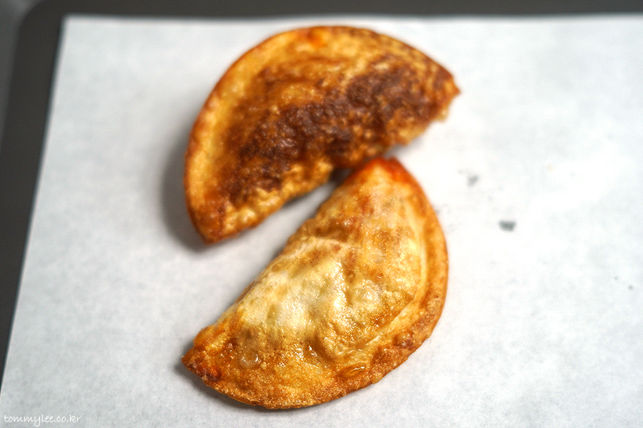 매운만두 2개째 냠냐므.. 살짝 색이 과하게 나온 거 같긴 한데 요게 더 바삭하긴 하네요..