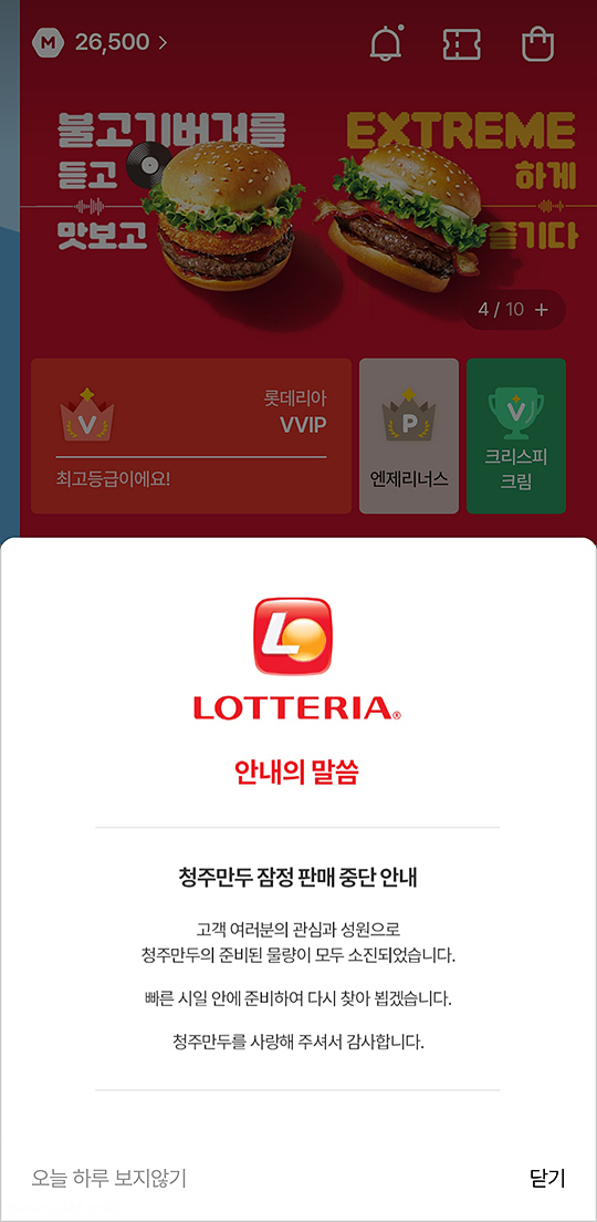 청주명물 입이즐거운그만두와 콜라보한 롯데리아 청주만두 매운만두와 미친만두 2종이 또 재고소진 사태가 빚어져 잠정 판매중단이 되었다는 슬픈 소식입니다..