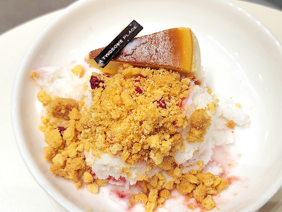 작년인 2022년 케이크 빙수와 다른 점은 치즈케이크를 썰어서 빙수 중간에 넣다가 이번에는 토핑 형식으로 온전한 조각케이크 모양을 유지해 올렸다는 점입니다..