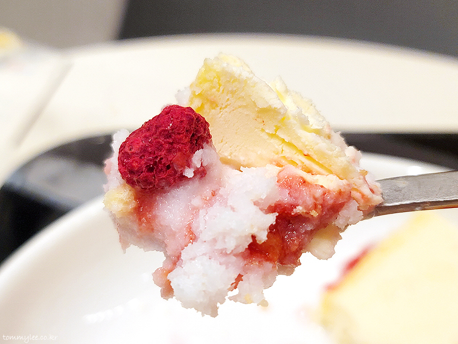 빙수를 감싸고 있는 펜스를 떼어내면 저 치즈케이크가 바로 떨어질 것 같은데 과연 저의 예상대로일까요??..