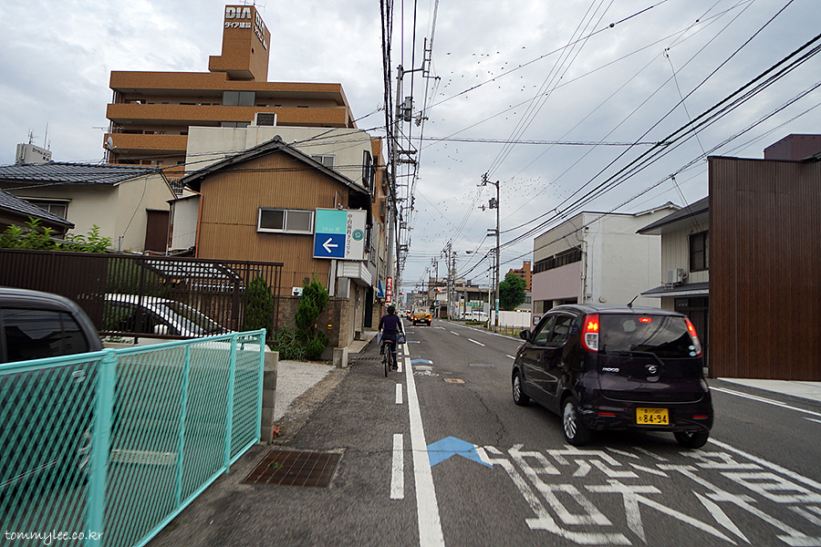 이제 돈키호테로 이동하는 길.. 리츠린공원부터는 이런 길로 이동했어요.. 일본은 자전거를 차도에서 타면 안 된다는 거.. 다른 분들 타시는 거 보고 왼쪽 갓길을 이용했습니다.. 그냥 앞 자전거 따라가면 되고 편했어요..