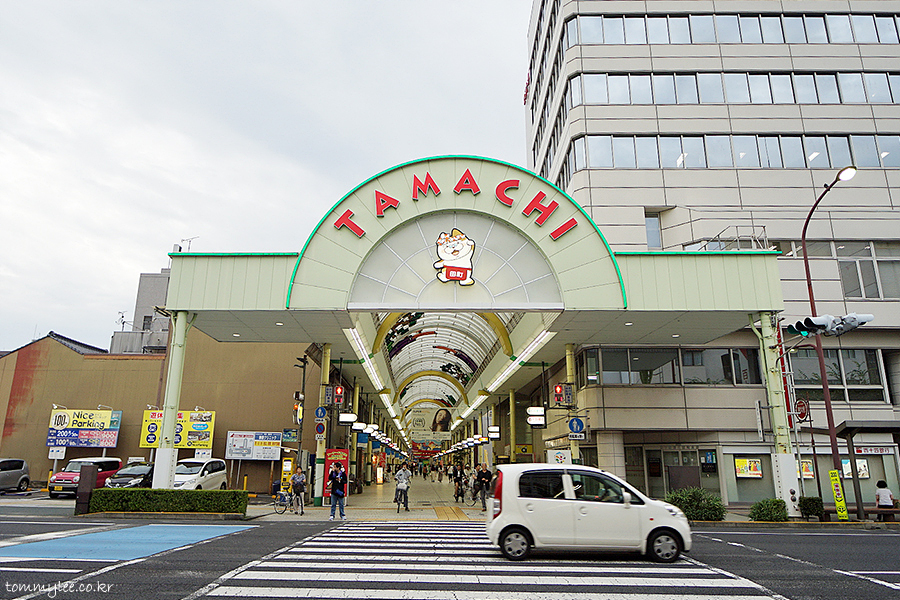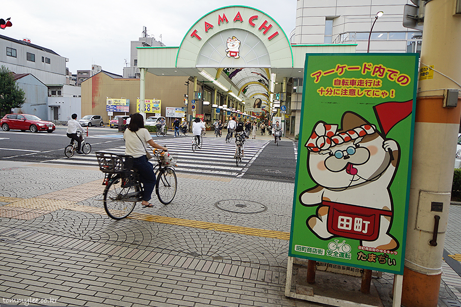 상점가에 이 배너가 곳곳에 붙어 있는데요.. 아케이드 내에서 자전거 주행은 충분히 주의를 기울여 달라는 내용입니다.. 타마치 상점가 캐릭터인 타마치이가 안전 운전하라고 하네요.. 이런 작은 상점가에도 유루캬라가 있다니 대단하죠??..