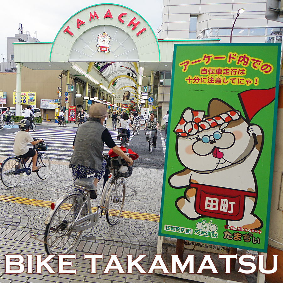 뭐랄까 상점가를 자전거 타고 이동하는 게 가장 편했어요.. 타카마츠 상점가에서 자전거 통행이 안 되는 곳은 미츠코시백화점 그 근처뿐이에요.. 효고마치 쪽 상점가를 갔는데 뭔가 쳐다보는 것 같고.. 주위에서 아무도 자전거를 타고 상점가를 가로지르지 않는다 싶으면 그 부근만 내려서 끌고 이동하시면 됩니다..