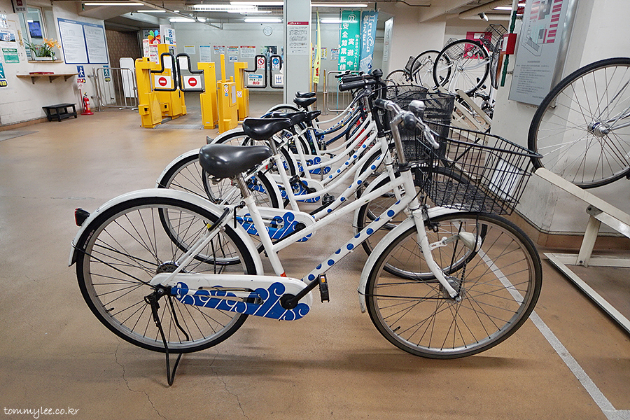 똑같은 자전거가 수십대가 있었어요.. 한국인관광객이 많이 오는지 물어봤는데.. 대여하시는 분들이 많진 않다고 합니다.. 200엔이면 24시간 탈 수 있는데 왜 아무도 안 오실까나.. ㅠ.ㅠ..