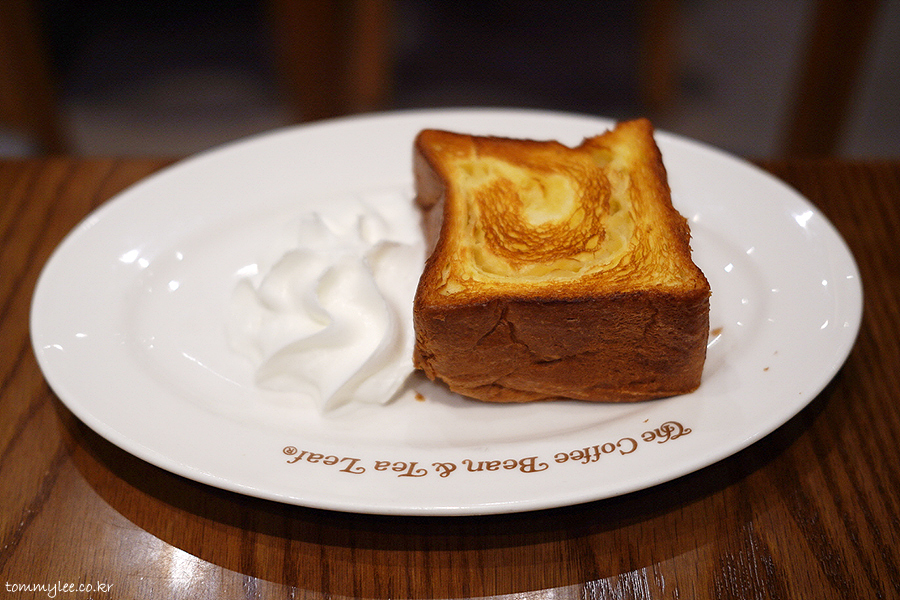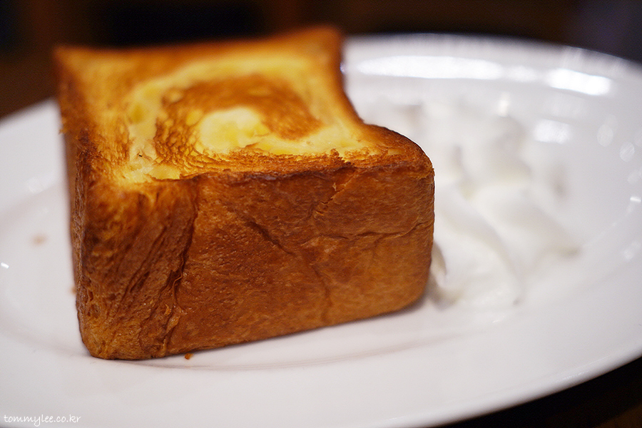 데니쉬 플레인 큐브 식빵을 위에서 바라보면 이런 느낌.. 토스트 된 플레인 식빵에 휘핑크림이 함께 제공됩니다..