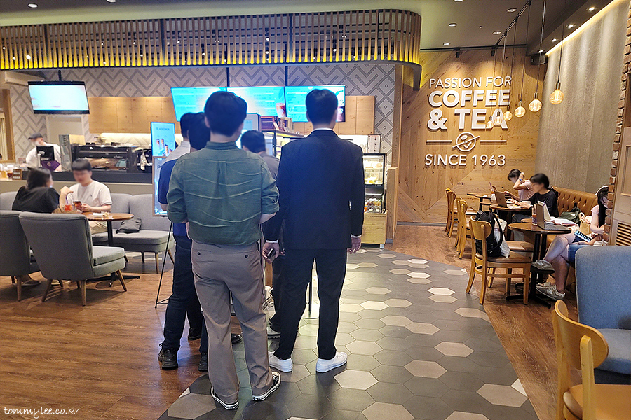 아니 근데 이게 무슨 일??.. 주문 하려고 줄을 섰네요??.. 이렇게 기다리면서 주문하는 모습을 최근엔 진짜 본 적이 없는데.. 암튼 주문하려면 많은 기다림이 필요했습니다만.. 저에겐 커피빈 퍼플오더가 있죠.. 퍼플오더로 기다림없이 바로 샤샤샥~.. ㅋㅋㅋ..