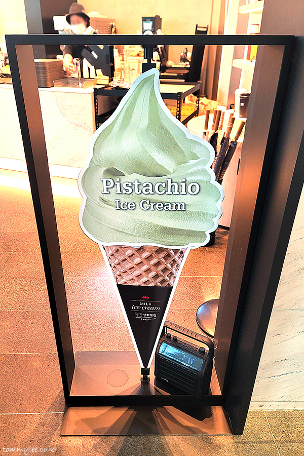피스타치오 아이스크림과 피스타치오 아이스크림 카페라떼, 밀크 아포가토.. 아이스크림 메뉴 3종 주문했네요..