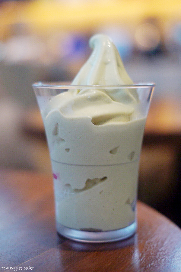 내추럴한 피스타치오 색의 아이스크림이고요.. 먹어보면 띠용~.. 피스타치오 풍미가 보기보다 훨씬 진합니다.. 다만 견과류 싫어하시는 분들에겐 어려운 맛일 수 있습니다.. ㅡㅡㅋ..