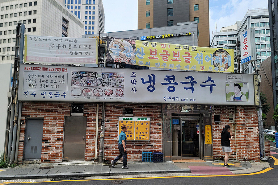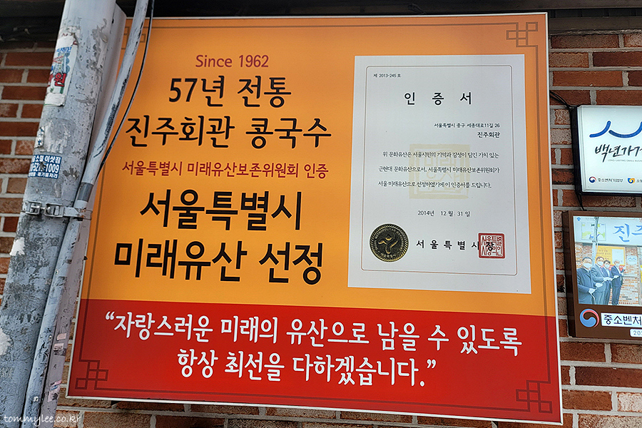 57년 전통이라고 나와 있지만 서울특별시 미래유산 선정될 당시 57년 전통이었고 지금은 61년 전통의 진주회관 콩국수가 되었습니다..