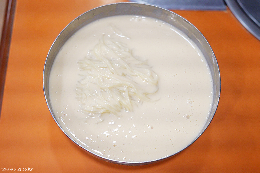 콩국수를 위에서 바라보면 이런 느낌.. 콩국물과 국수로만 구성된 순수 콩국수입니다..