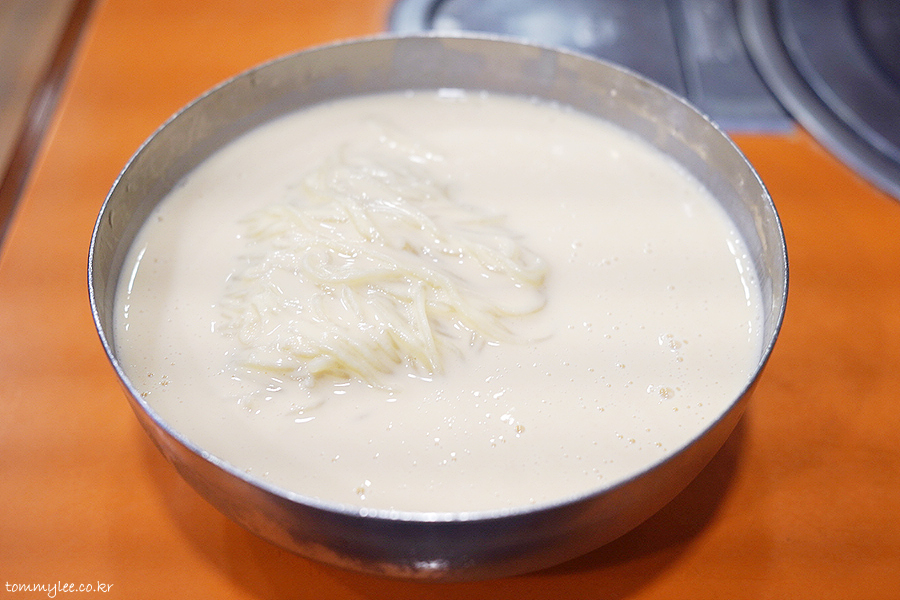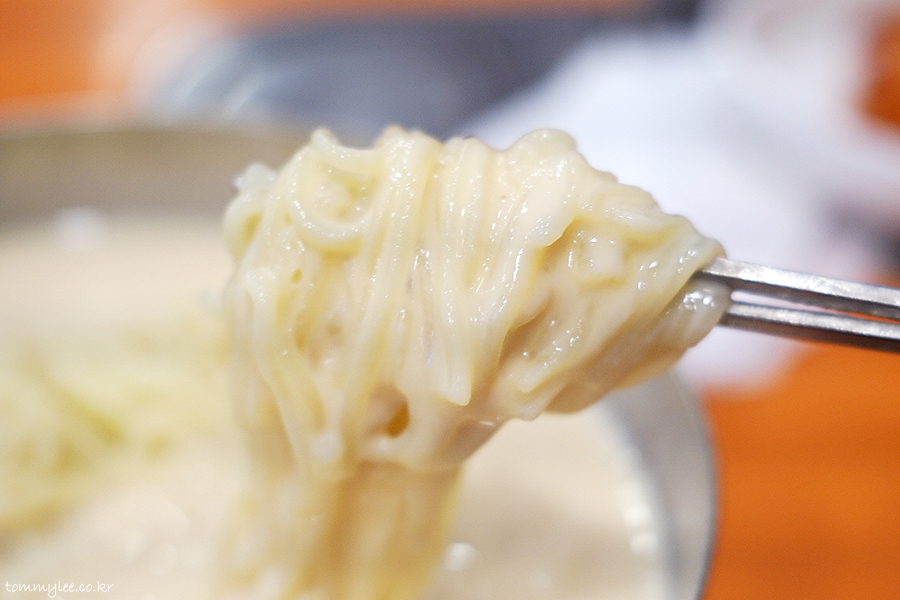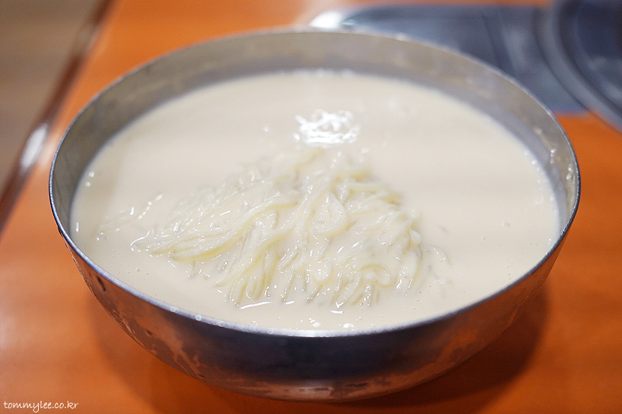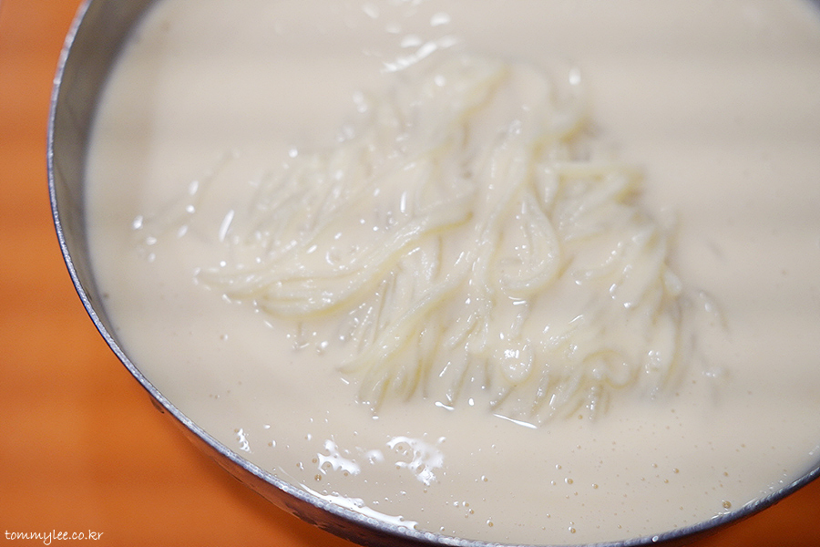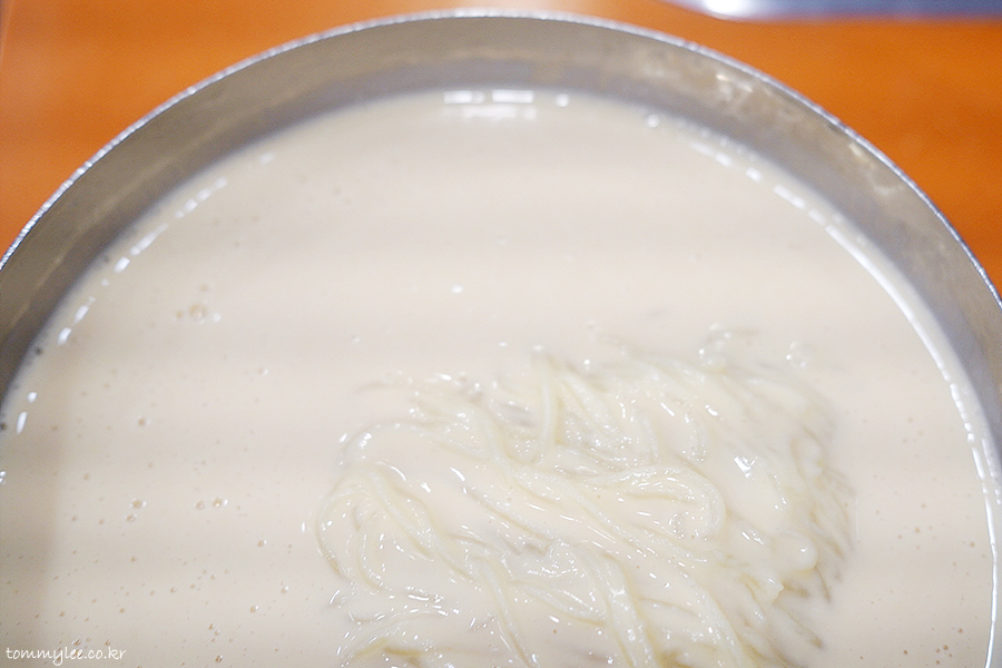 진한 콩국물이 면에 착싹 달라붙어 젓가락에 감겨 올라오는 훈훈한 이 모습..