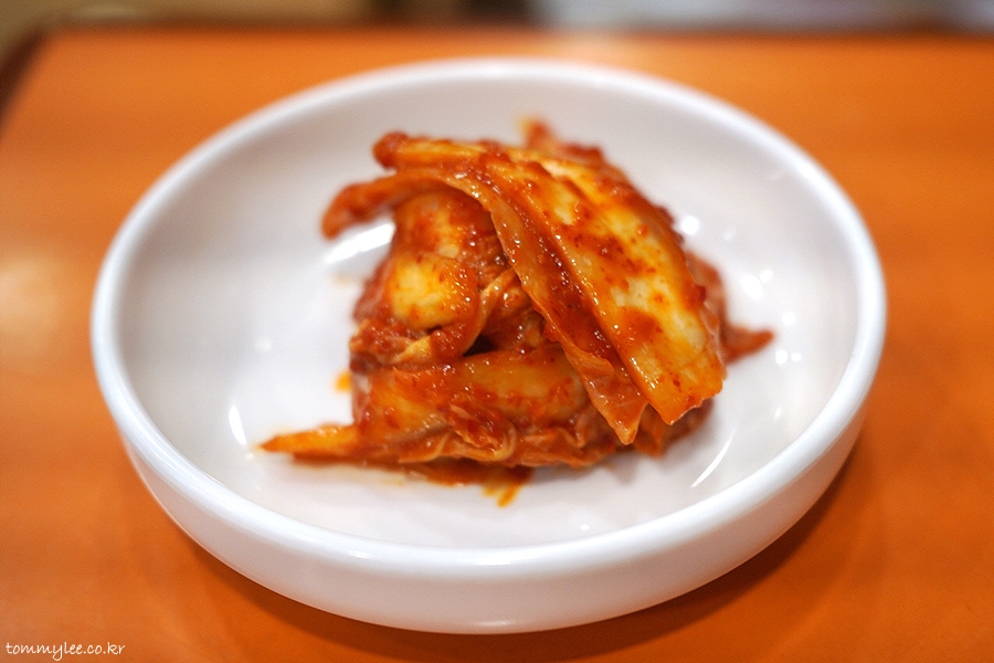 찬은 배추김치 한 가지.. 뉴슈가맛 김치..