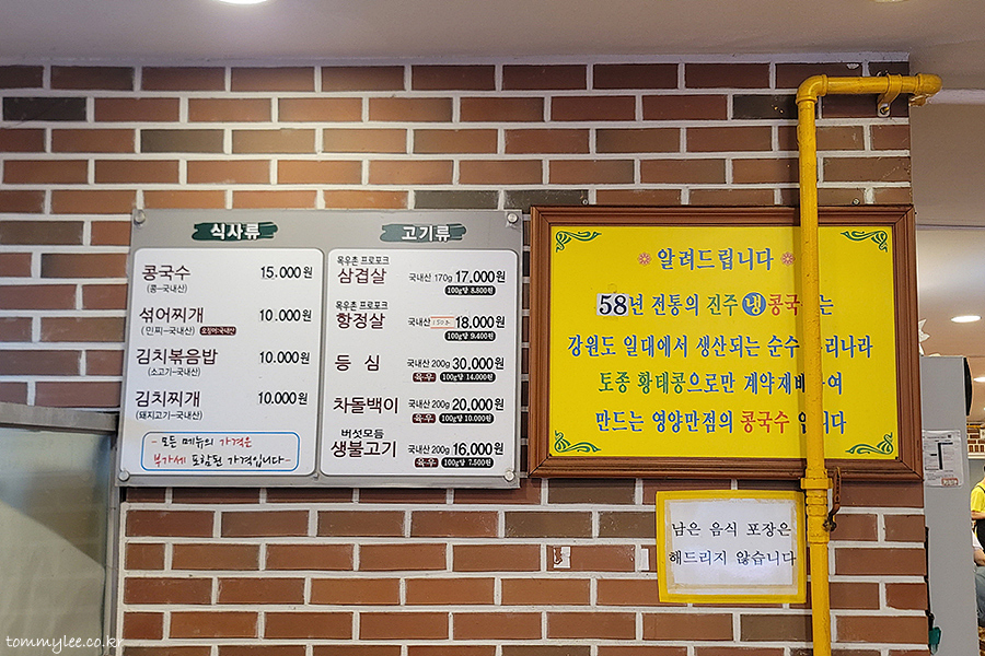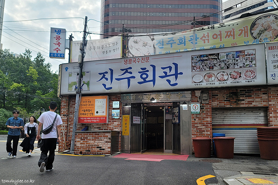 최근 모 커뮤니티에 저의 사진이 무단 불펌되었다는 제보(?)를 받고 가봤는데.. '줄 서서 먹는다는 15,000원 콩국수.jpg'라는 글에 제 진주회관 포스팅 메뉴판 가격이랑 콩국수 사진을 가져다 쓰셨더라고요.. 암튼 그 글 덕분에 콩국수가 급 먹고 싶어 져서 진주회관 오픈런(?)으로 다녀왔습니다..