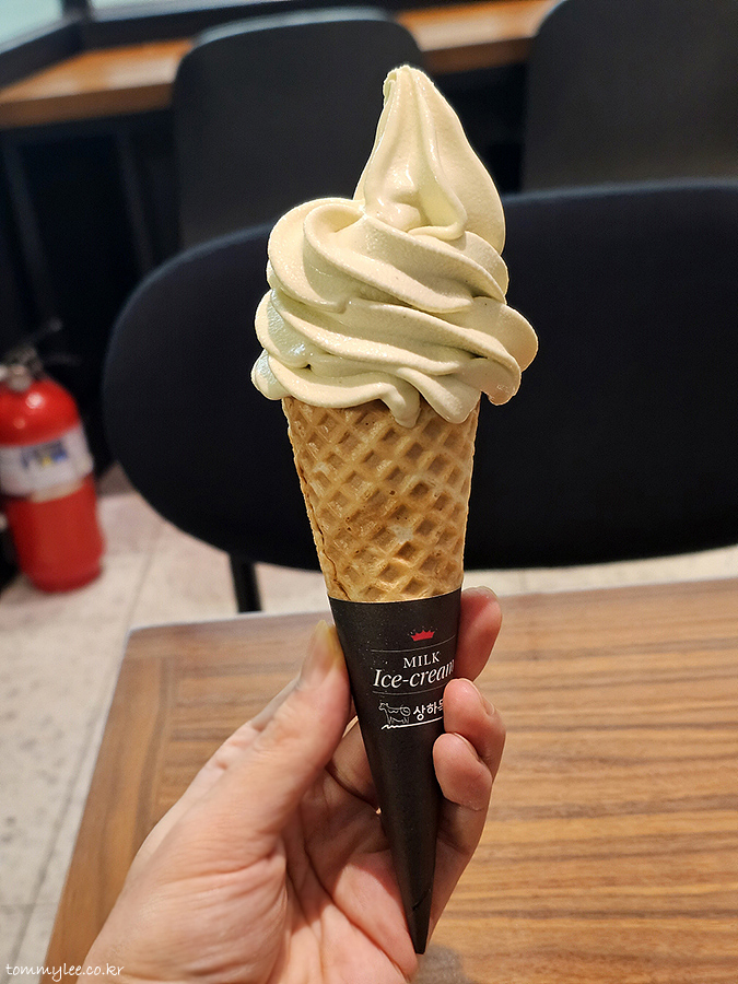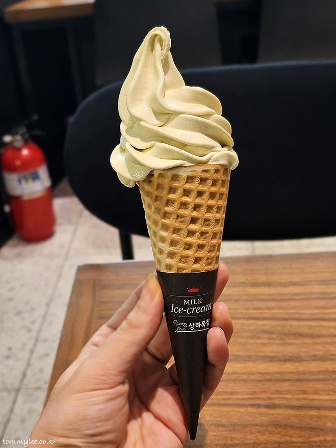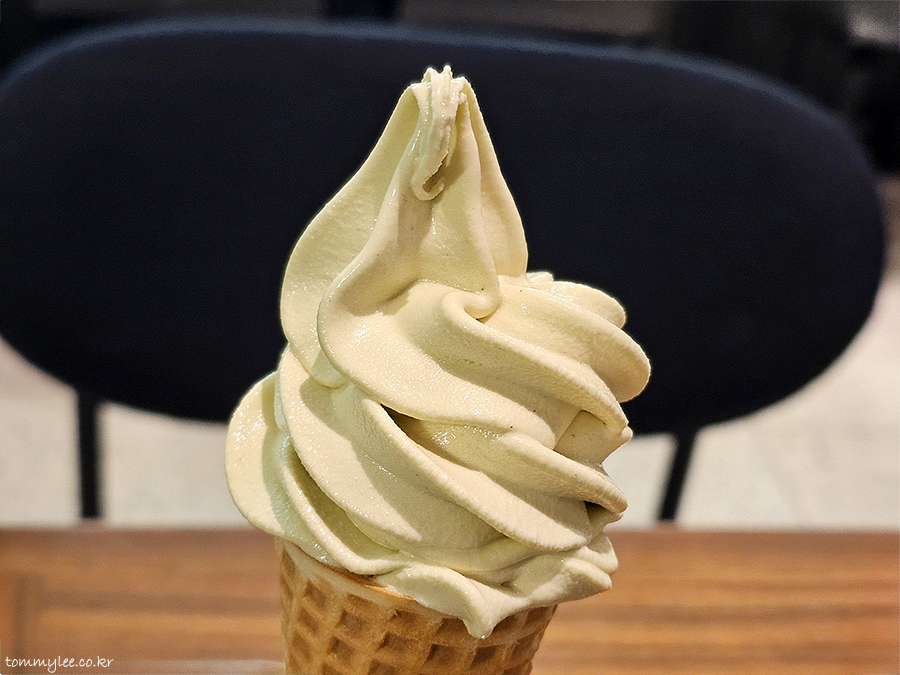 부드러운 피스타치오 소프트크림을 돌려가며 냠냠.. 피스타치오와 상하목장 우유의 완벽한 조화.. 홍대점의 후한 아이스크림 인심 굿굿..