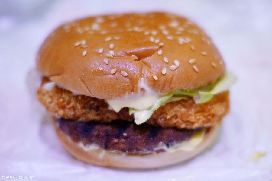 두툼한 패티에 기름 쭉쭉 해쉬드감자까지 훈훈하네요.. 볼륨감이 있는 만큼 칼로리 또한 657Kcal로 만만하지 않다는 거.. ㅋㅋㅋ..