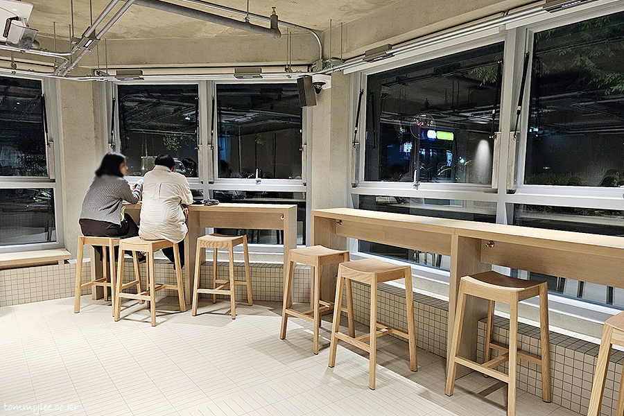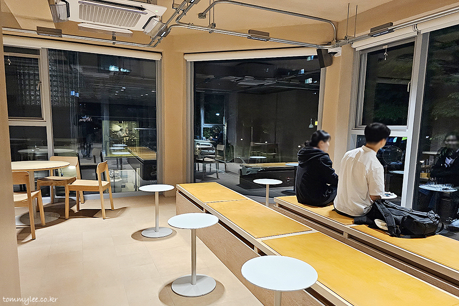 캐셔 건너편 쪽의 테이블은 뭐 이런 느낌입니다.. 블루보틀 연남카페는 경의선숲길이 보이는 카운터석이 인기가 많아요..