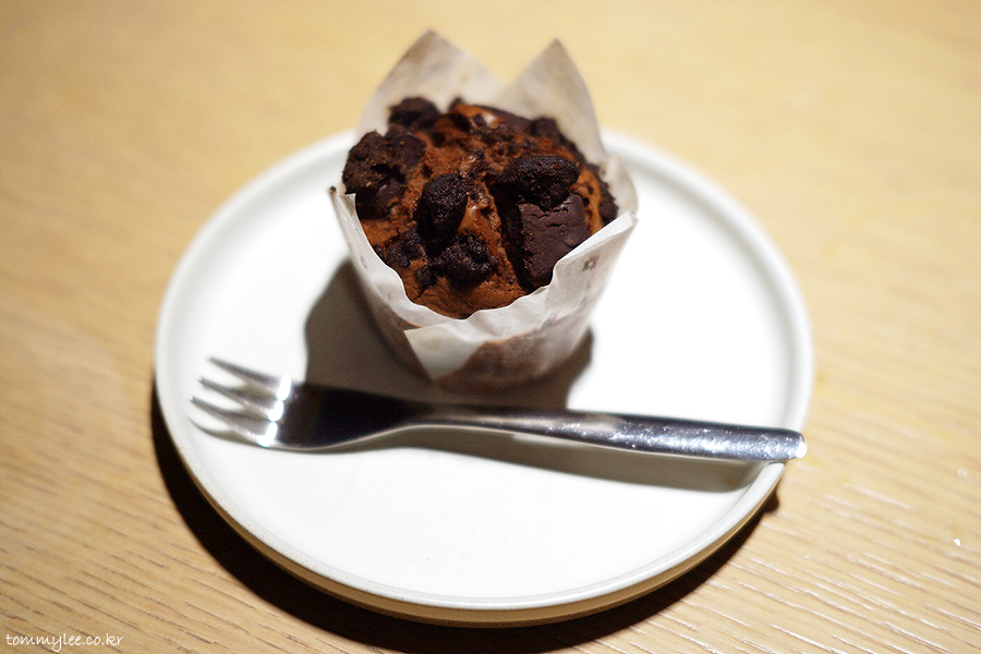 컵케이크처럼 생긴 브라우니 케이크의 모습이 되겠습니다.. 블루보틀 케이크의 특징이라면 사이즈가 작다는 거??.. ㅋㅋㅋ..