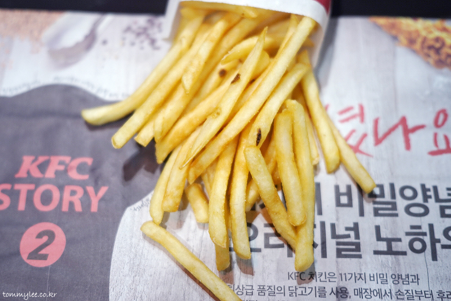 딜리버리하면 이 퀄리티가 안나오겠지만.. 매장에서 바로 먹는 KFC 프렌치프라이는 꽤 맛이 좋답니다..