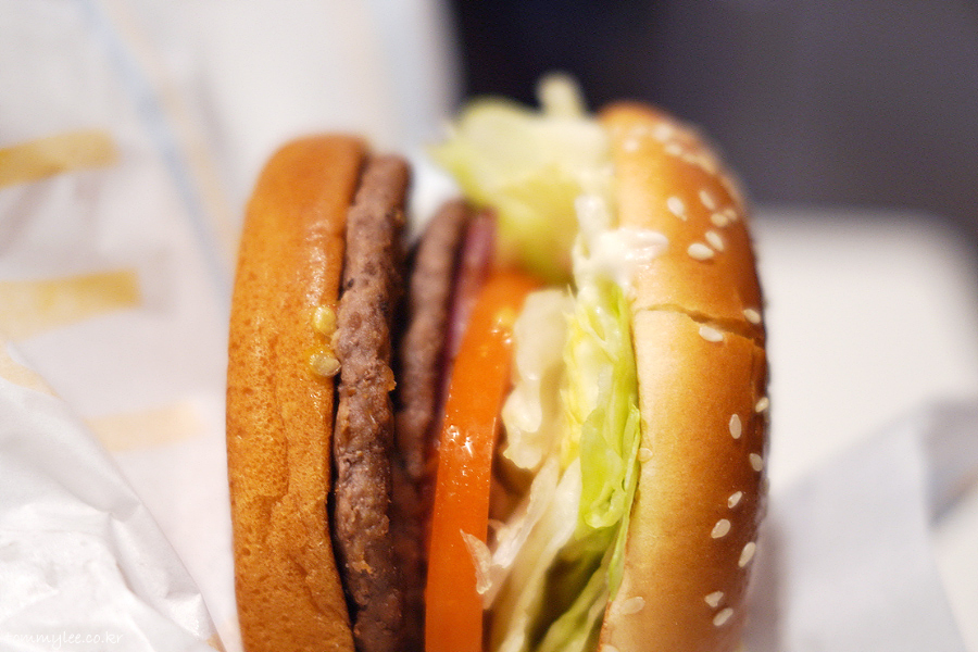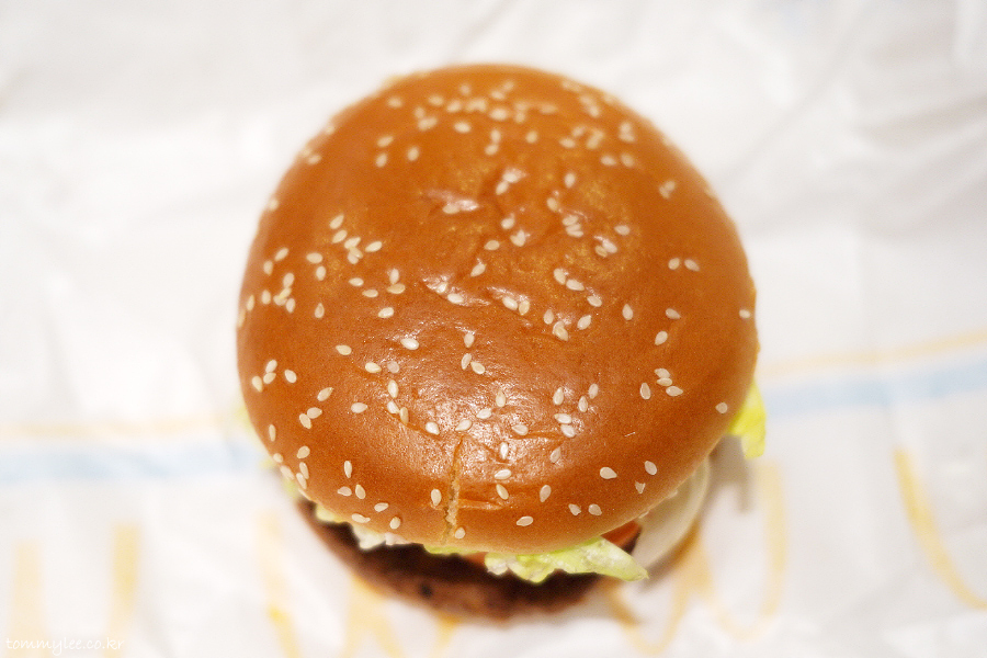 맥도날드 양상추양이 경쟁업체처럼 많아져서 늘 적응이 안 됩니다.. 예전엔 야채인심이 정말 박했는데 최근엔 많이 개선이 되었어요.. 번을 공중부양 시키고 있는 훈훈한 양상추양 굿굿..