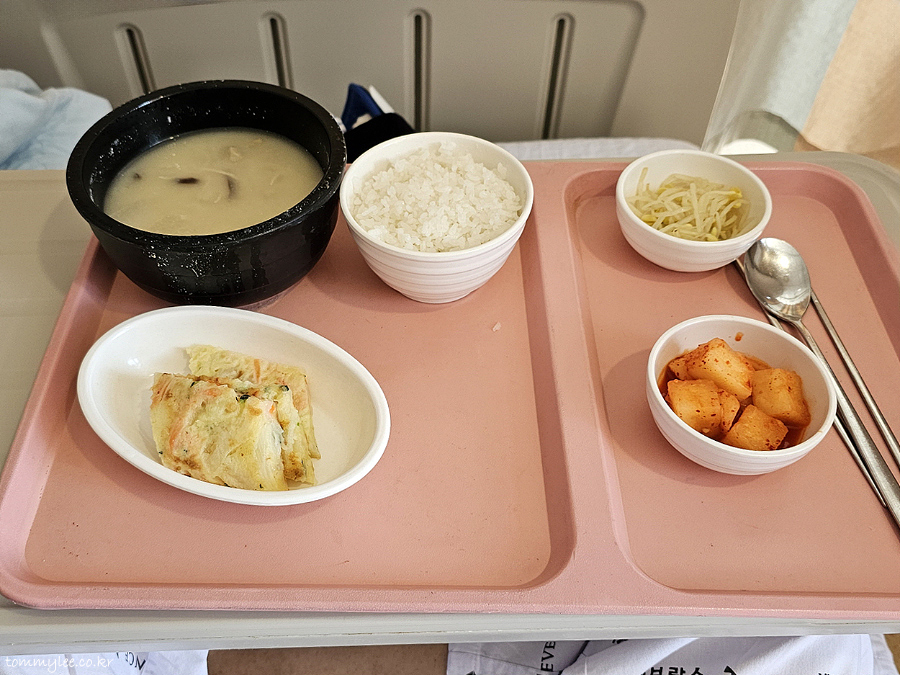 12시부터 수술 때까지 쭉 금식이어서 두 번째 날 조식, 중식은 없어요.. 아무것도 입에 대면 안됩니다.. 물마저도 절대 금지라고 수차례 강조.. 그나저나 수술은 마취 덕분에 언제 하는지도 모르게 자고 일어나니 싱겁게(?) 끝나버렸어요.. 대기 시간은 매우 길고 지루했지만 수술은 의식을 잃은 후 후다닥 끝남.. ㅡㅡㅋ..