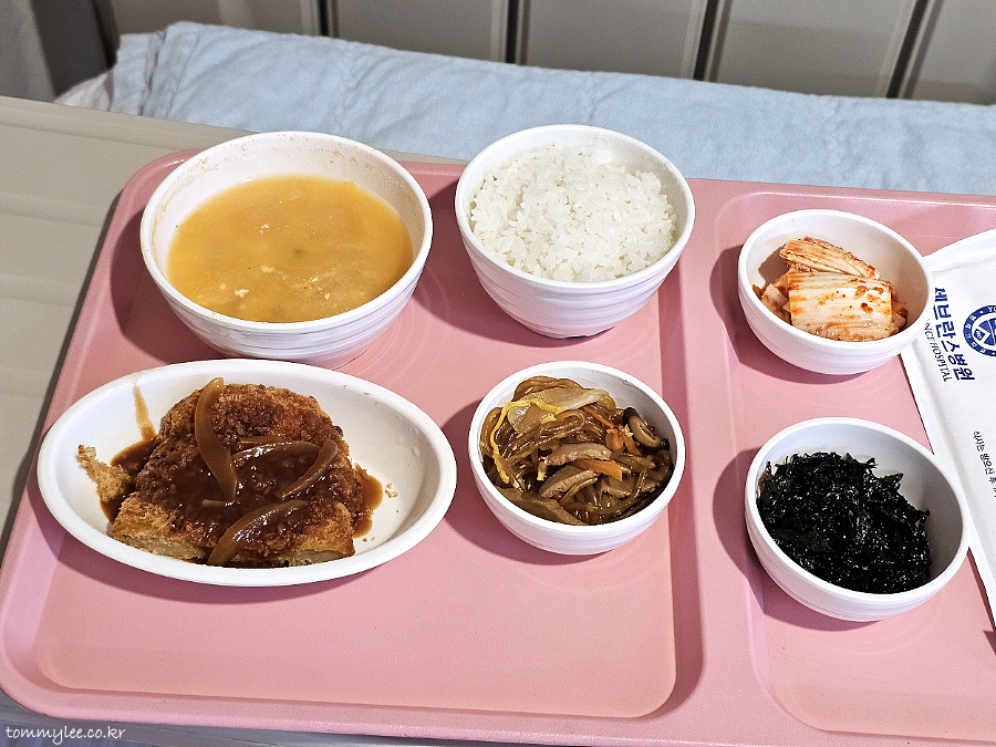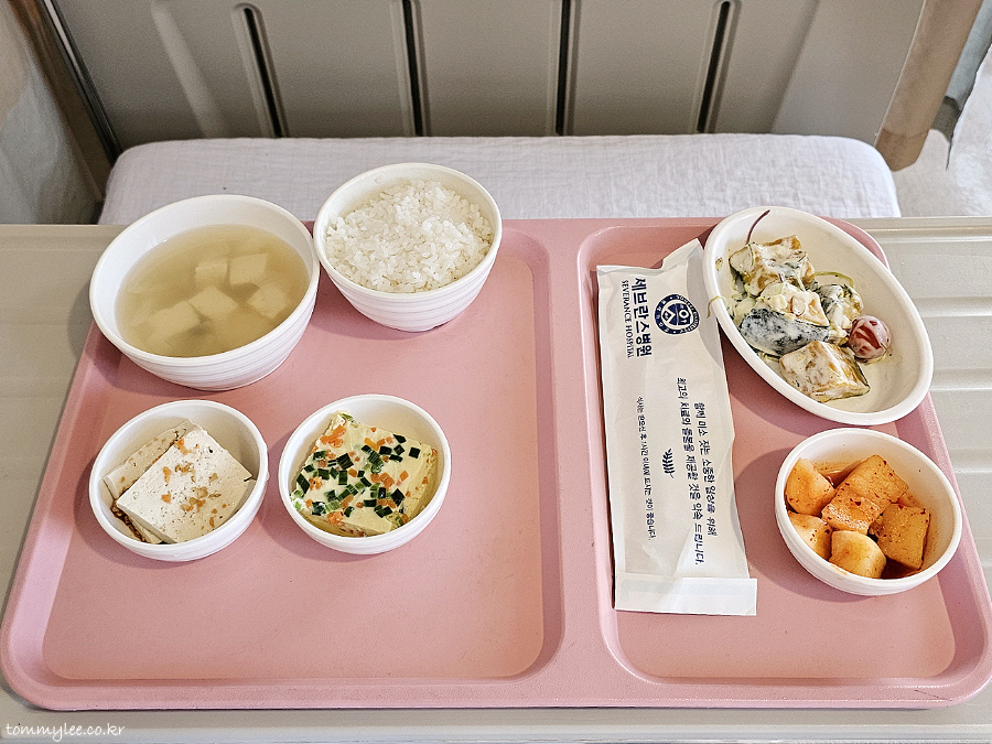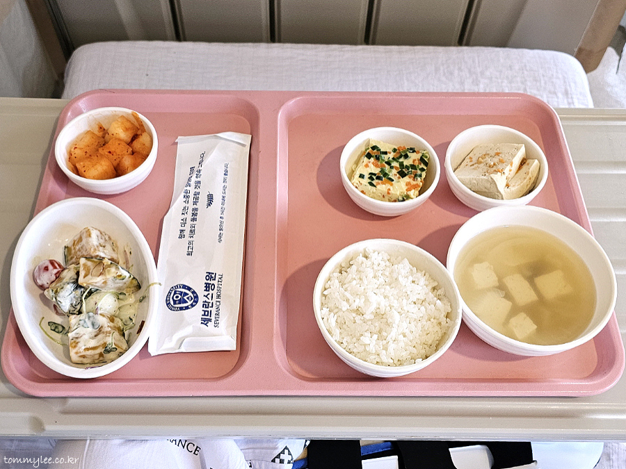 난이도 높은 어려운 수술은 아니었어서 입원이 2박3일이어도 충분했을 것 같았는데요.. 진통제를 끊을 순 없기 때문에 3박4일이 되지 않았나 싶습니다.. 퇴원일 새벽 체온이 37.2도로 적절하지 않아서.. 막판까지 체온을 37 언더로 조정하는 노력을 한 후에 퇴원할 수 있었네요.. 5인실 첫 경험이었는데 만실이 아니어서 화장실 이용 등이 여유로웠고.. 병원비 또한 200 언더로 생각보다는 덜 나와서 전체적으로는 만족스러운 입원이 되었답니다.. 9년만의 세브란스병원 본관 입원생활 식단체험이었는데요.. 시그니처 분홍색 식판부터가 예전 그대로고 메뉴도 전과 크게 달라진 점은 없었다는 내용이 되겠네요.. 밥은 퍼석하고 국은 미적지근한 세브란스 병원식의 고질적인 문제 또한 여전했지만 김치류가 슴슴해진 점은 칭찬합니다.. 음.. 수술 일정 때문에 부득이하게 베이글 조식을 못먹은 게 아쉬움으로 남음.. 세브란스병원 본원 3박4일 환자식 후기 끝~..