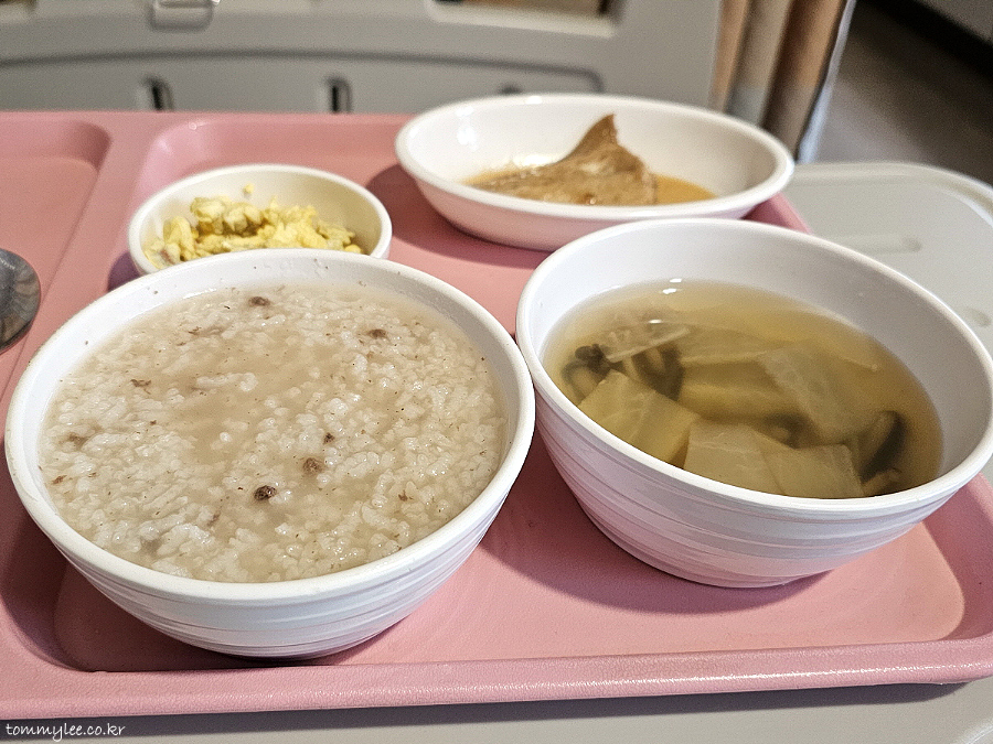 소고기죽이 나오긴 했는데 의외로 반찬은 일반식처럼 생선에 계란볶음까지 제대로 나와서.. 회복식으로 죽을 굳이 먹어야 하나 싶었어요.. 죽이랑 물김치만 나오면 치료식인가.. ㅡㅡa.. 심지어 계란은 촉촉하지도 않았음.. ㅋㅋㅋ.. 암튼 식사하는 내내 이 죽을 먹는 의미가 있나 싶었던..