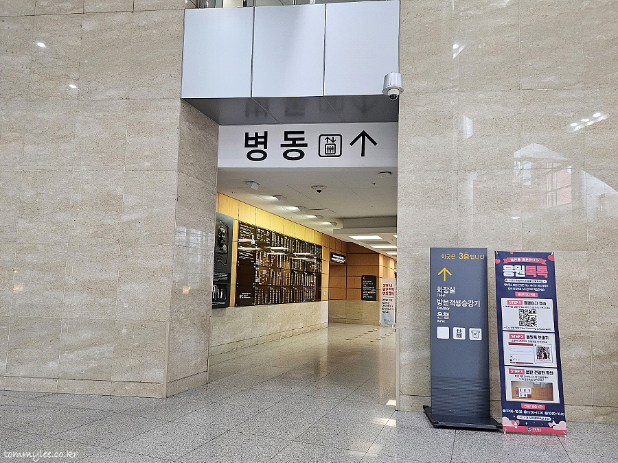 입원 접수창구에서 입구 쪽으로 이동하면 병동이라고 엄청 크게 쓰여있는데요.. 여기로 들어가신 후 엘리베이터를 타고 지정받은 병동으로 이동하시면 됩니다.. 이번에 느낀건데 의외로 사람들이 장애인에게 친절하더란 거.. 버튼도 대신 눌러 주시고 문 열고 기다려 주시고.. 체크인 시간은 보통 14:00~15:00이고, 체크아웃은 12:00 이전에 다 이뤄진다고 보시면 됩니다..