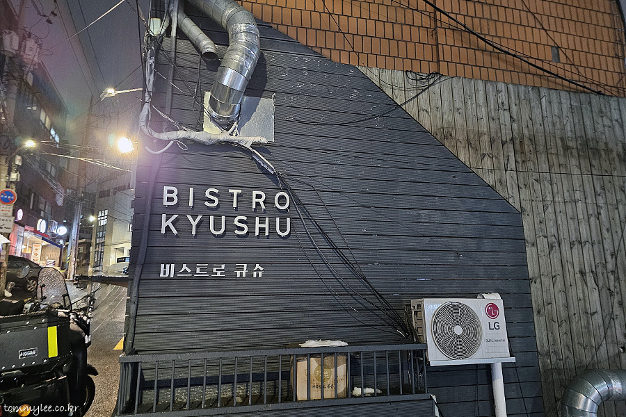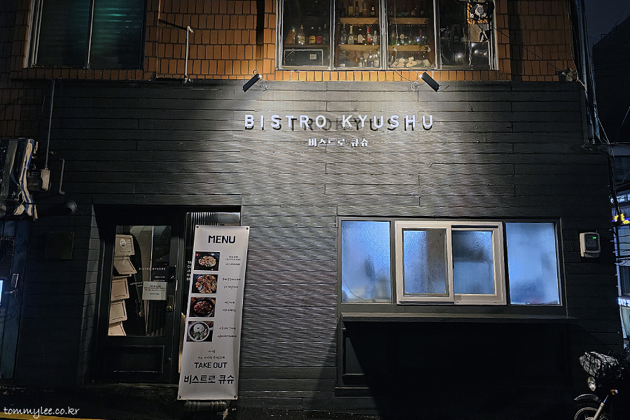 비스트로큐슈는 홍대 앞 산울림소극장 버스정류장 인근에 있어요.. 와우산로를 등지고 있어서 큰 길가에서 안보이긴 하는데 나쁜 위치는 아님..