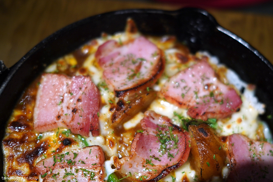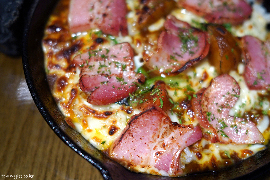 두께감이 꽤 있는 삼겹살 토핑이 꽤 실하게 들어가 있고.. 치즈도 모짜렐라 단독이 아닌 블렌드 치즈를 사용해 성의 있다고 지인분께서 호평.. 메뉴 설명에 보면 3가지 치즈를 섞은 트리플 치즈 토핑이라고 함..