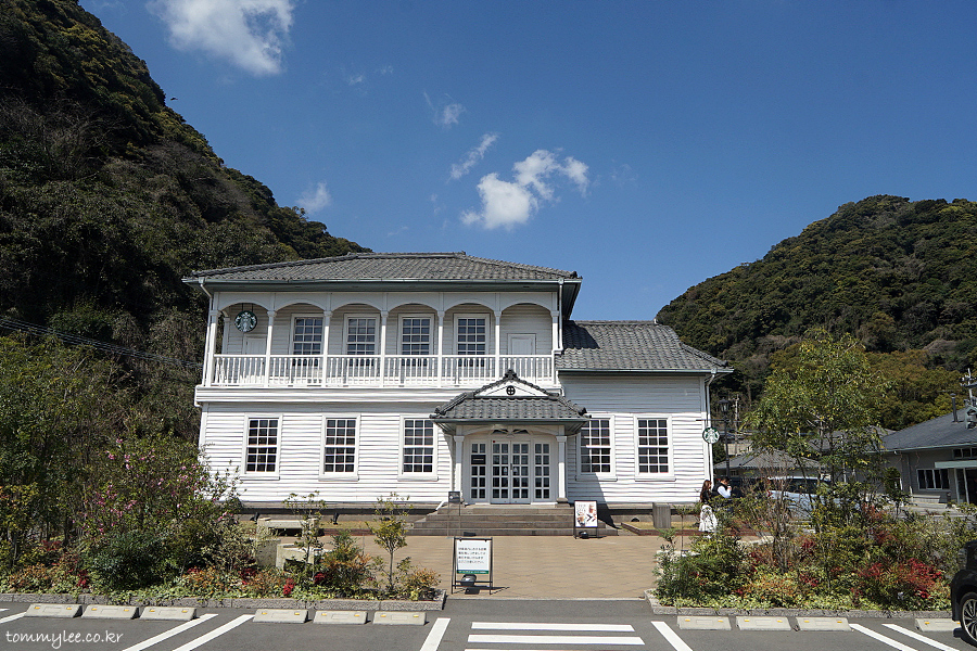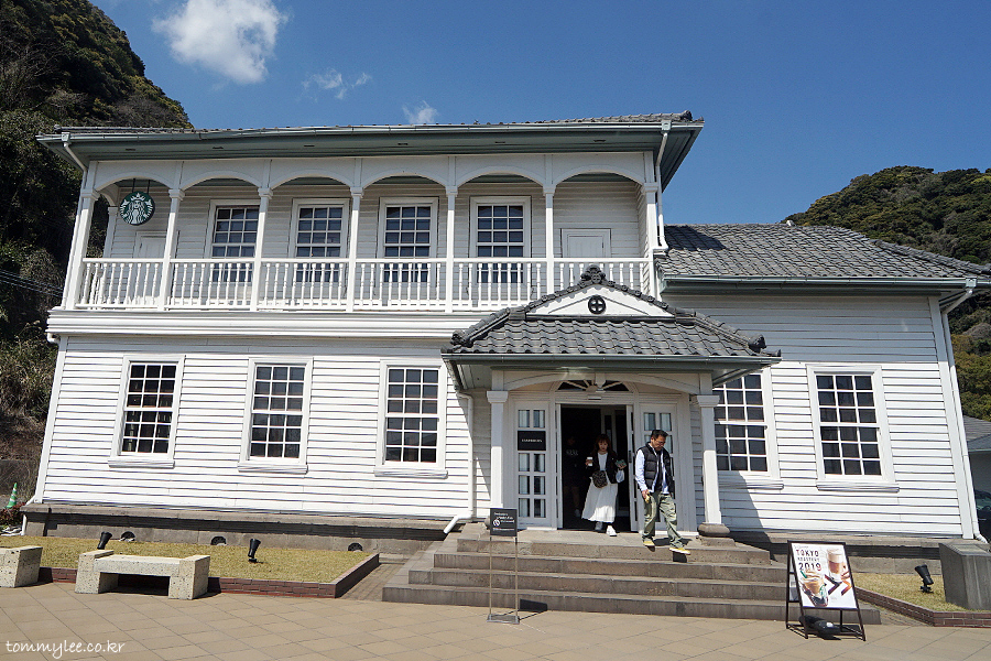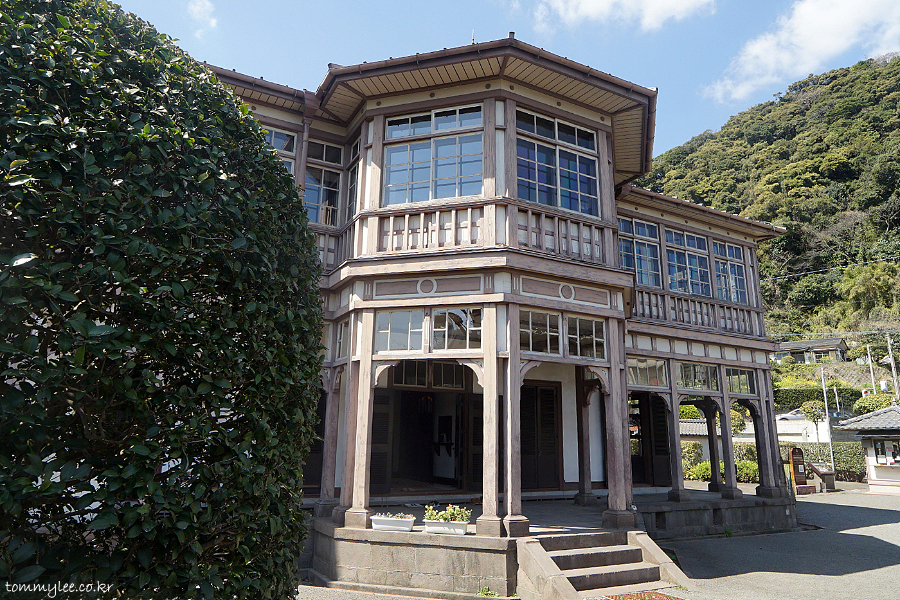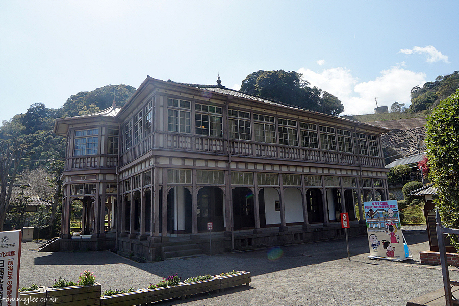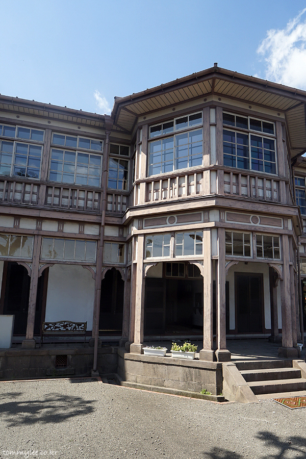 일본의 서양식 목조 건축물의 대표적인 것으로.. 일본식과 서양식의 양식을 절충한 것이 특징.. 영국인 감독하에 일본인 목수들이 건축했다고 합니다.. 특히 지붕쪽은 일본 건축양식이 많이 반영.. 1962년 국가중요문화재로 지정되고 2015년 세계문화유산에 등록되었다고 쓰여있음..