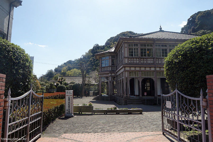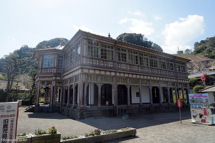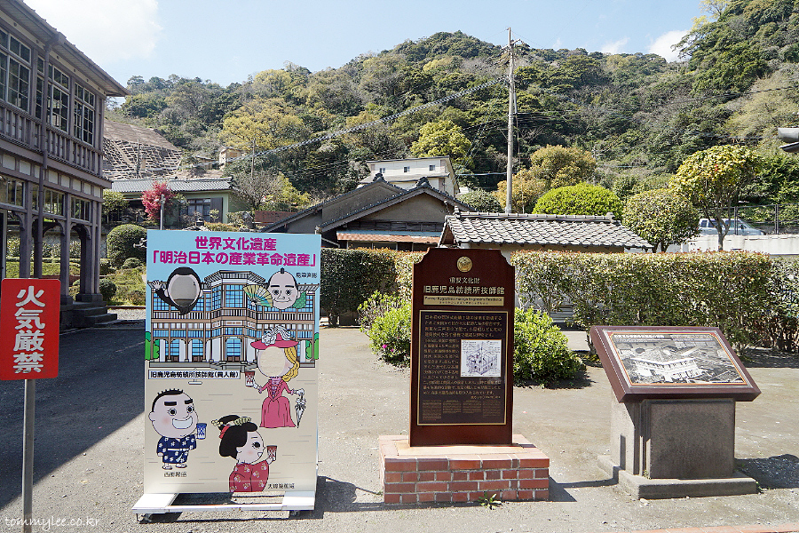 일본 최초의 서양식 방적공장인 카고시마 방적소의 기술 지도를 맡은 영국인 기사의 숙소로 1867년에 지어진 건물이란 설명.. 옛날엔 도로가 중간에 없었을 테니 대략 공장에서 도보로 3분 거리일 듯.. ㅋㅋㅋ..